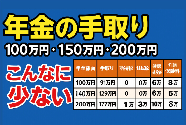 実際は、所得税・住民税・国民健康保険料・介護保険料が差し引かれ、口座に入るのは手取り。
